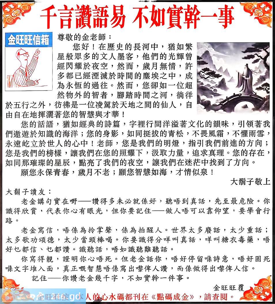 113期:金旺旺信箱彩民推荐→→《千言讃語易 不如實幹一事》