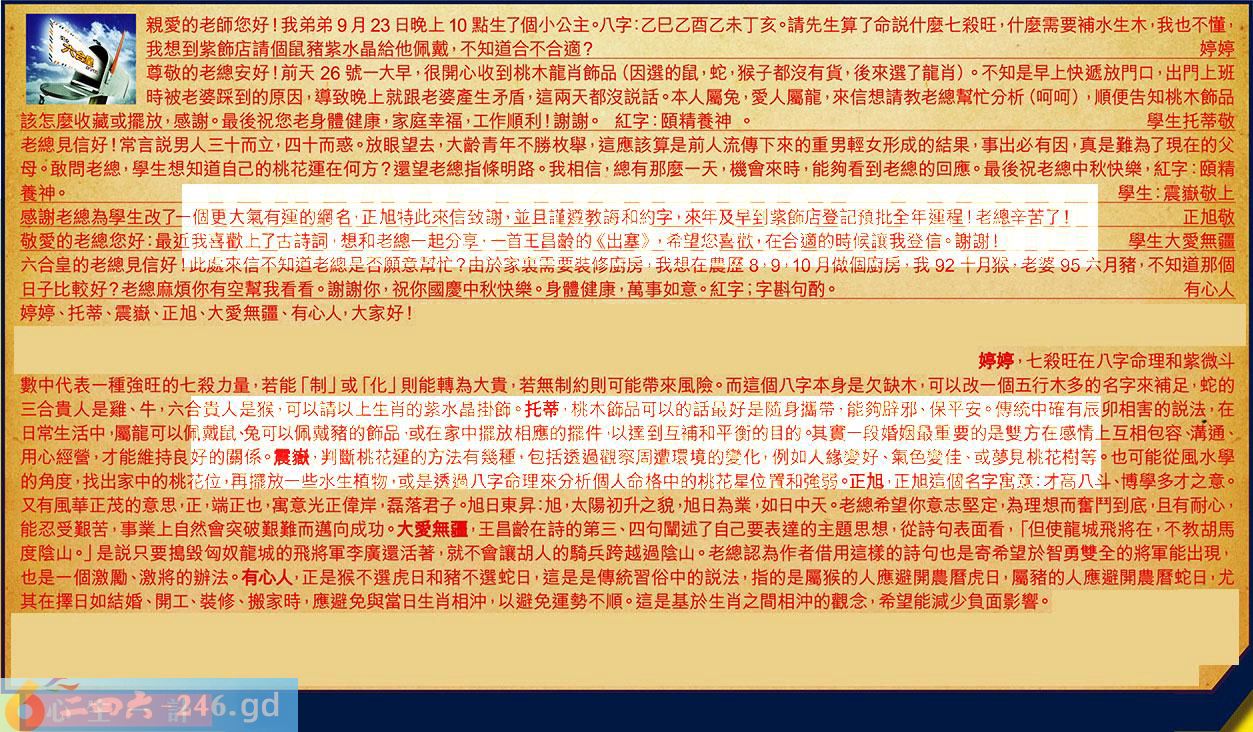 【6】.六合皇的老總見信好!此處來信不知道老總是否願意幫忙?由於家裏需要裝修廚房,我想在農歷8,9,10月做個廚房,我92十月猴,老婆95六月豬,不知道那個日子比較好?老總麻煩你有空幫我看看。謝謝你,祝你國慶中秋快樂。身體健康,萬事如意。紅字;字斟句酌。有心人