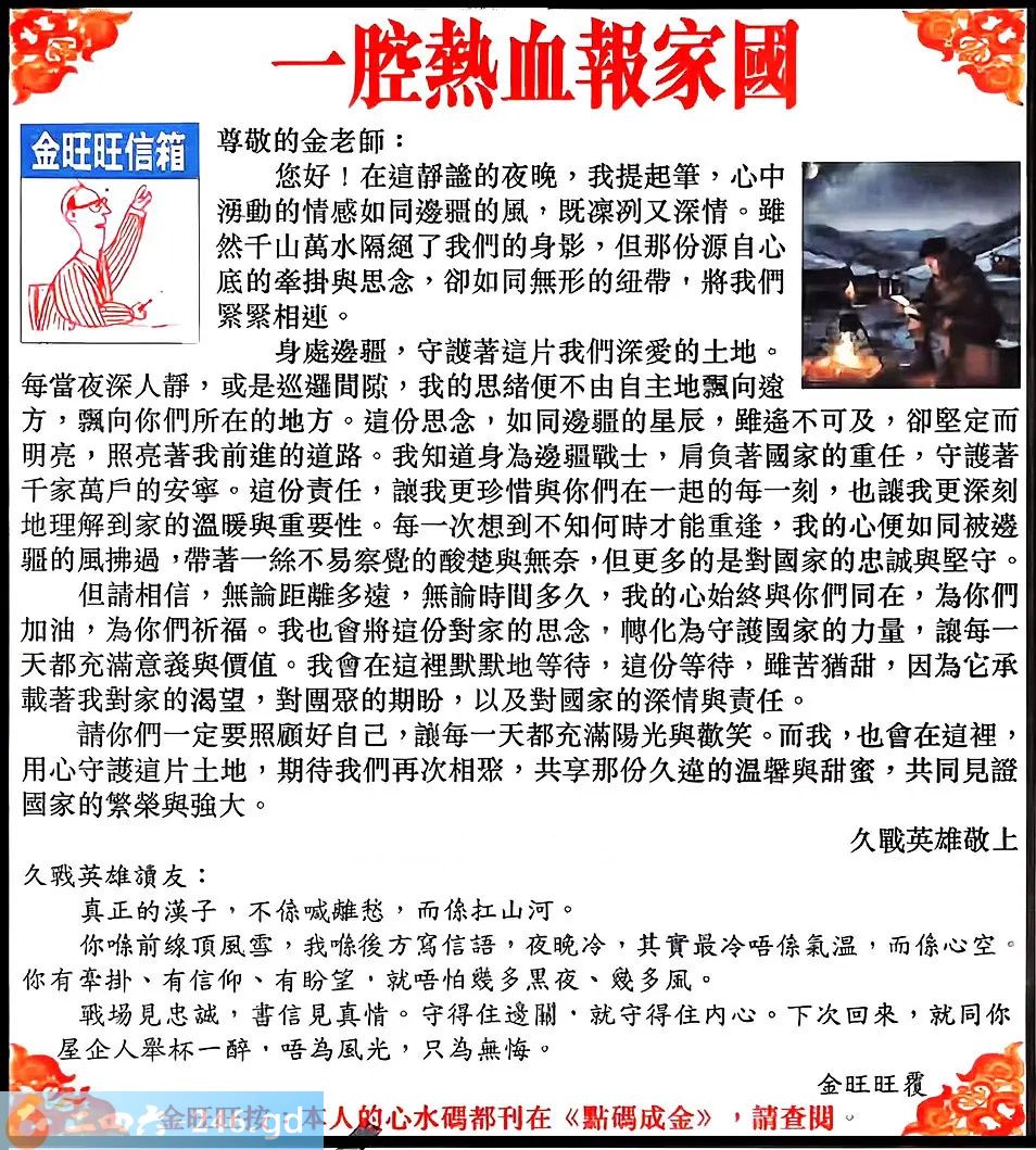 2025124期124期:金旺旺信箱彩民推荐→→《一腔熱血報家國》