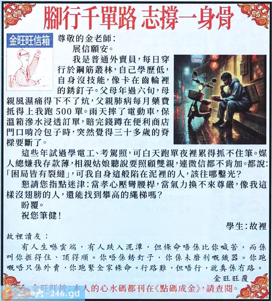 2025013期013期:金旺旺信箱彩民推荐→→《腳行千單路 志撐一身骨》