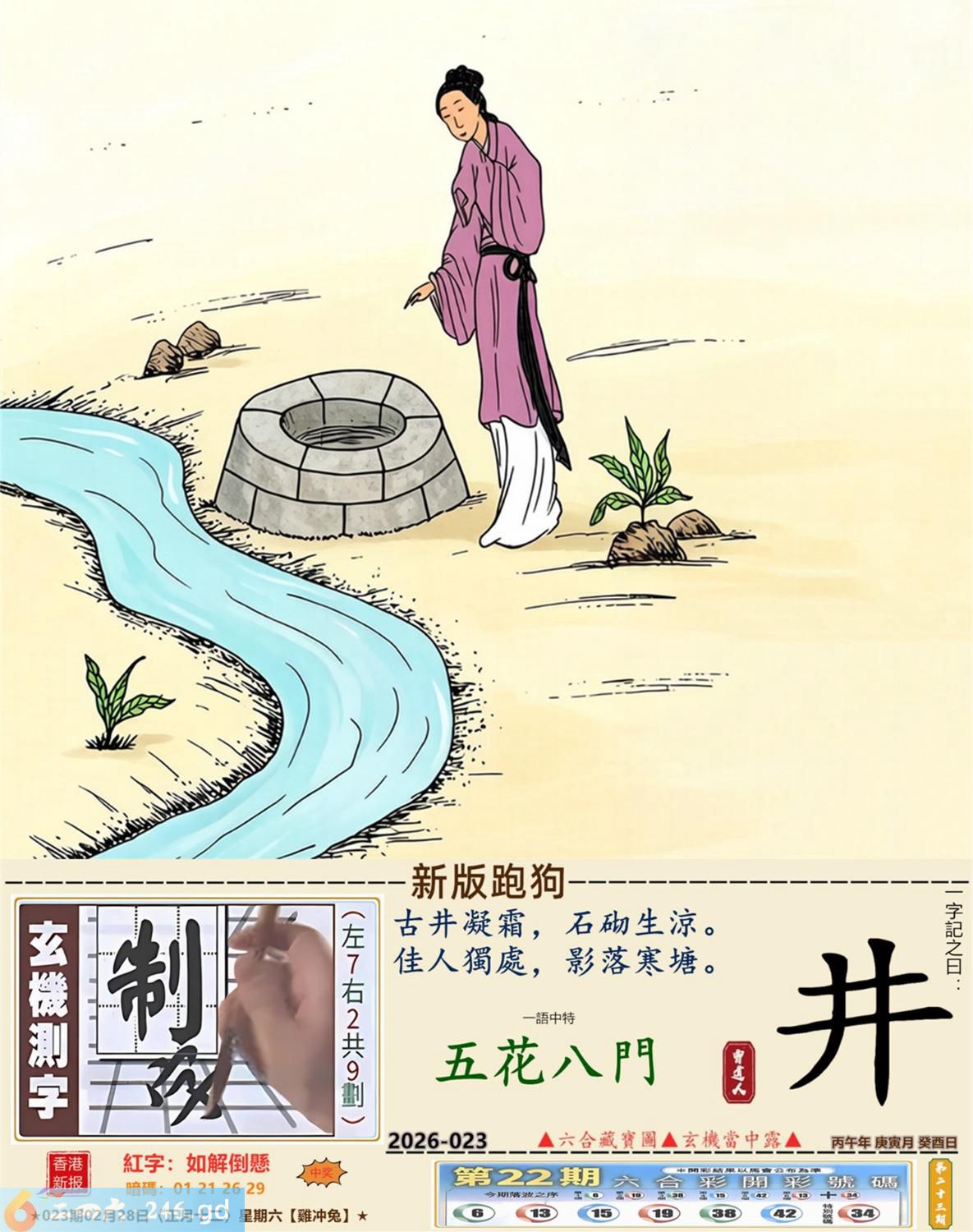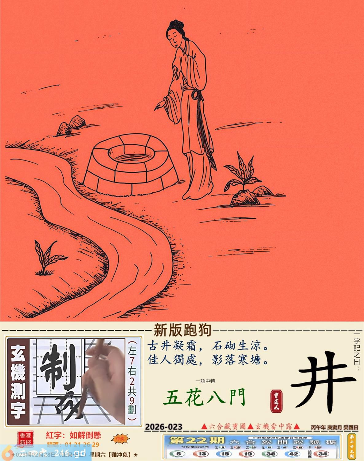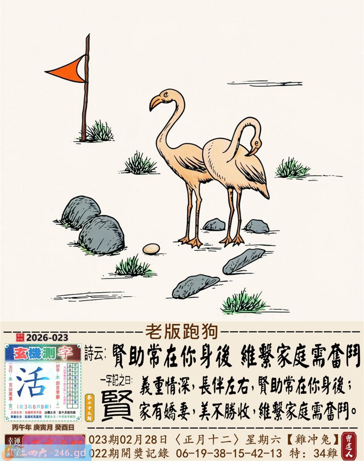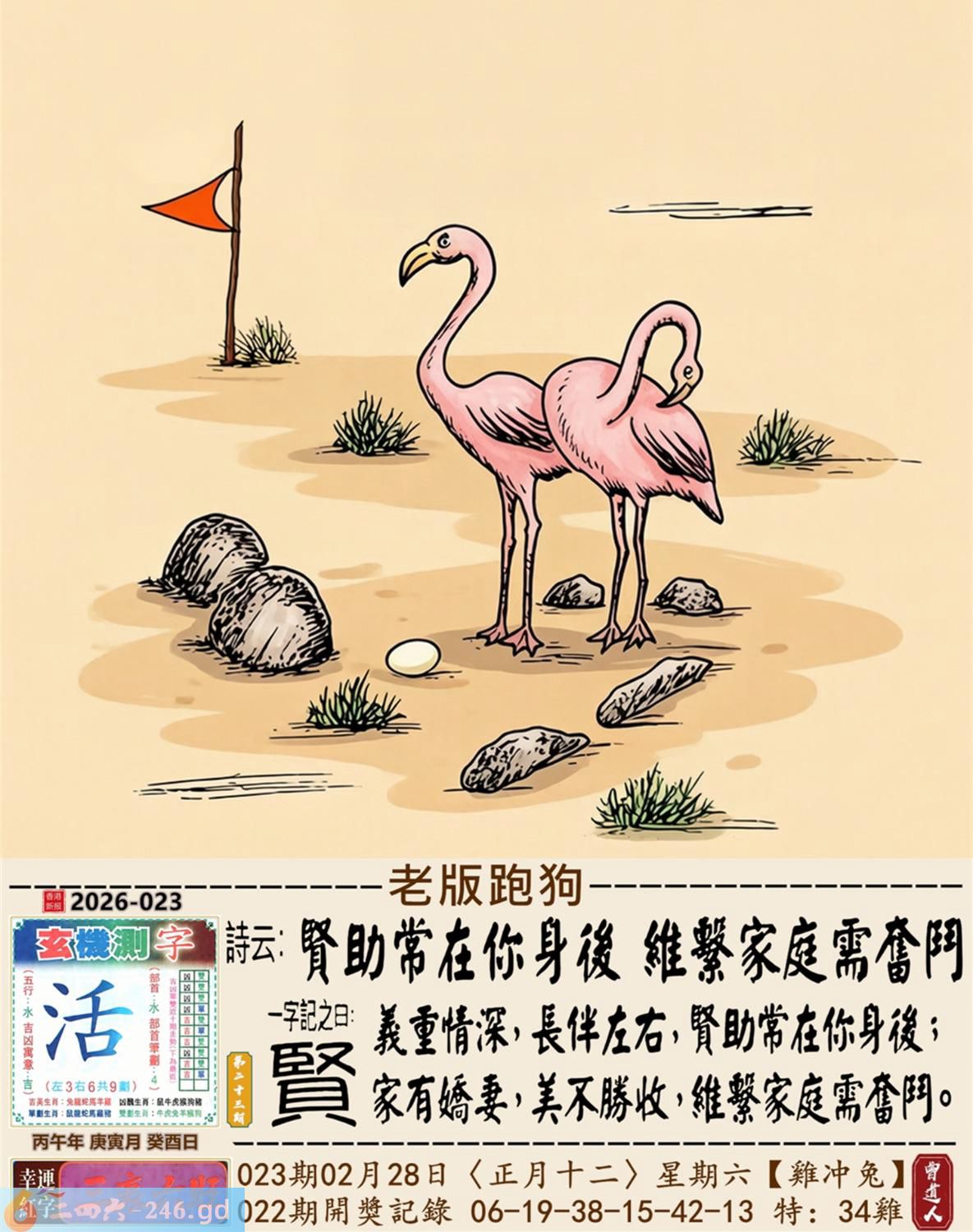 本帖最后由小歪于2026-2-2722:20编辑 2026年2月28日023期兔(丁卯)(剑锋金) 023期:老版跑狗玄機一字記之曰:【賢】 詩云:賢助常在你身後維繫家庭需奮鬥 義重情深,長伴左右,賢助常在你身後; 家有嬌妻,美不勝收,維繫家庭需奮鬥。 玄機測字:《活》 密圖詩:十次買一有時中 《記》:一日文章拜布衣 特碼大小單雙句:方圓十里無客棧 今期必中:張飛 023期:特碼歇后語 会计拿逄盘-----算啦 023期正版四字梅花诗:繁文缛节。 023期火车头:烧伤兔。诗:牛死羊伤,家喻户晓最忠心。 023期香港第一手欲钱料:红?。 023期曾道人说:“四分五裂?” 023期另版四字梅花诗:格格出嫁。 023期香港第一手欲钱料:欲钱找富贵不淫的动物。 023期曾道人说:“为什么儿童喜欢看动画片”? 023期:二字经:蓝红。 023期:太平间是特码 023期:智力金壤; 023期:信箱紅字:【如解倒懸】 023期:【暗碼:01-21-26-29】 023期:一語中特:【五花八門】 發財玄機圖:適應快速後腿强健圖中明兔紅藍 023期:藏寳圖 新:不知玉露凉风急 老:疏钟已应晚来风 禁:虎禁:7尾玄机字《韩》 2026年023期【生活幽默】版 〖營救〗 在一次事故中,一名男子被埋進了一個兩米深的缝隙裹,除了頭部能活動外,手脚都動彈不得,營救人員不知怎才能安全地把他救上來。這時,那男子説:"衹要抓住我的一衹耳朵,就能把我拉出來。"營救人員無計可施,衹好照做了,男子果然奇迹般地被救了上來。現場記者問那男子:"你的耳朵怎會有那大的力量?"男子苦笑着説:"鍛煉出來的。平時在家裹,老婆一不顺心,就扯我的耳朵。"