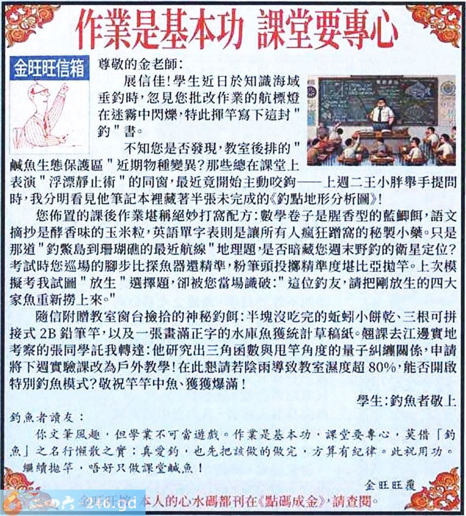 024期:金旺旺信箱彩民推荐→→《作業是基本功 課堂要專心》