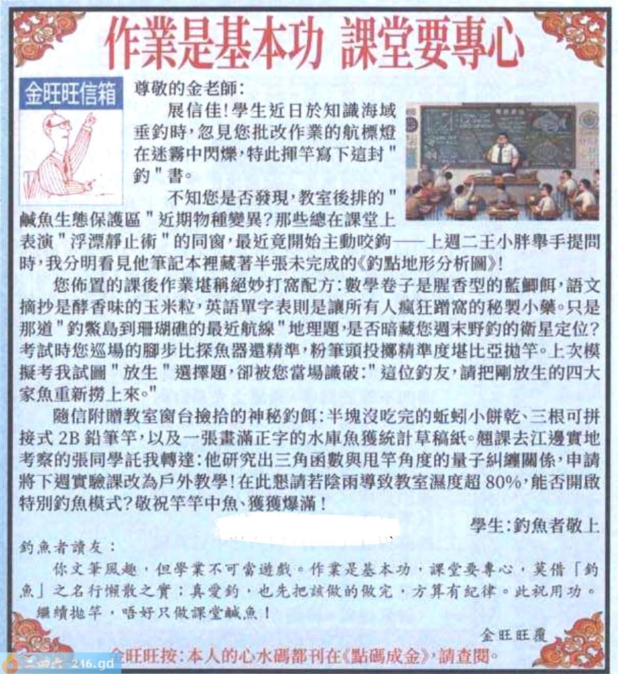 2026024期024期:金旺旺信箱彩民推荐→→《作業是基本功 課堂要專心》