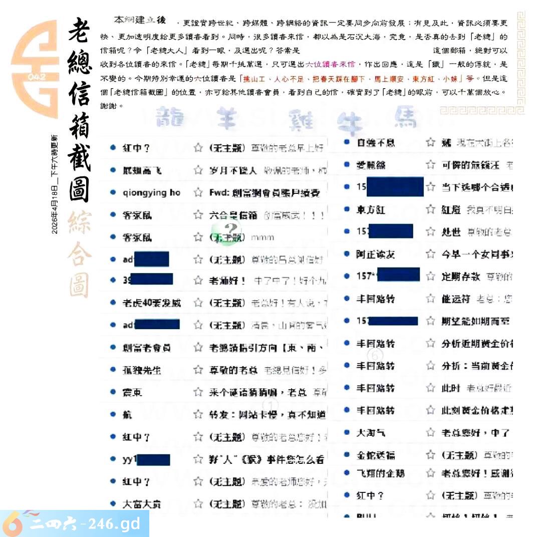 2026042期042期:彩民推荐〖貼信讀者論壇〗〖曾道人信箱〗