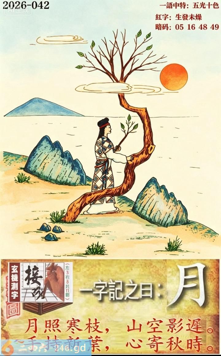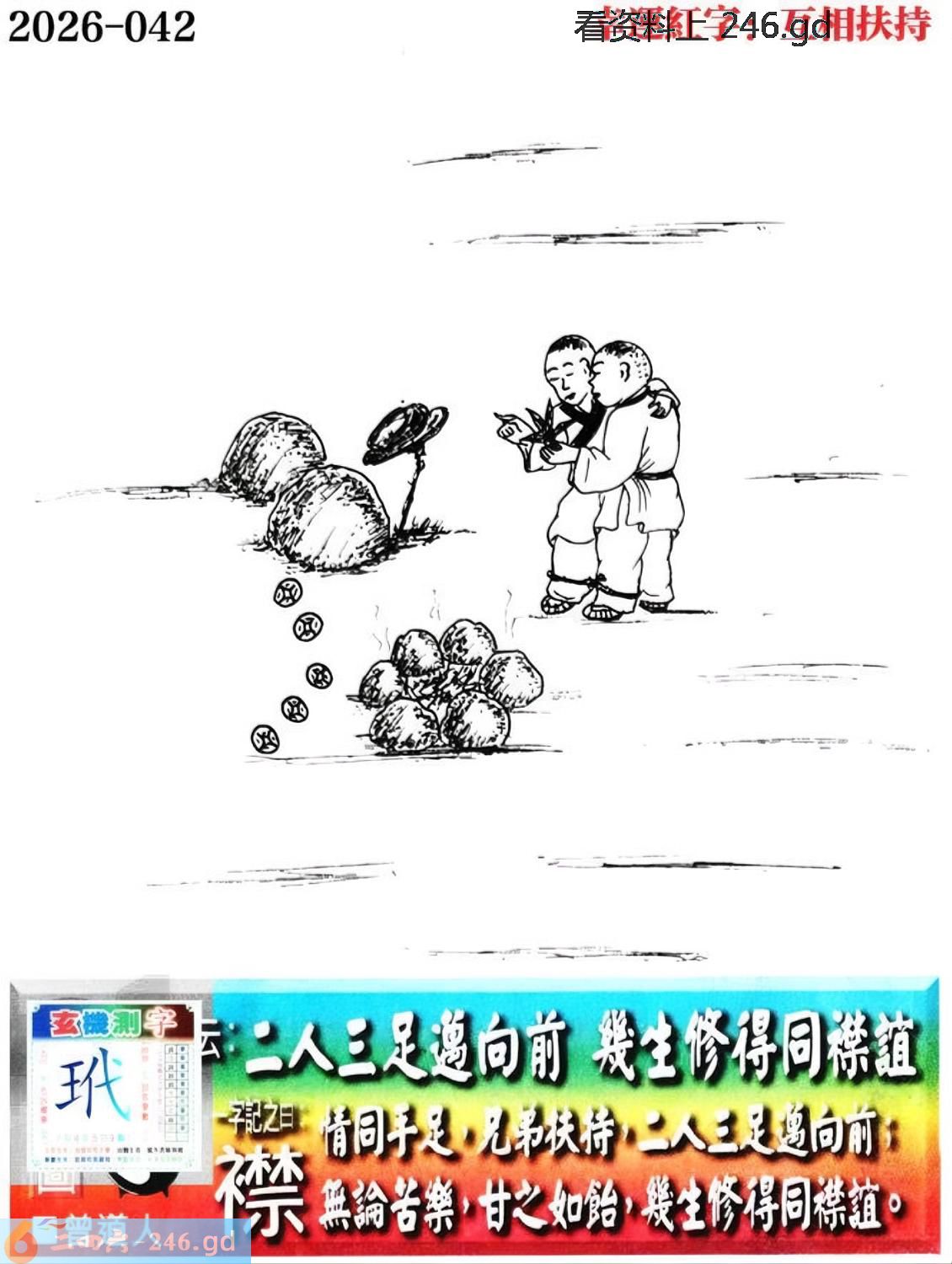 本帖最后由小歪于2026-4-1719:41编辑 2026年4月18日三月初二星期六大海水狗日沖龍 042期:老版跑狗玄机一字記之曰:【襟】 詩云:二人三足邁向前,幾生修得同襟誼。 情同手足,兄弟扶持,二人三足邁向前; 無論苦樂,甘之如飴,幾生修得同襟誼。 玄機測字:《玳》 密圖詩:酒足飯飽去按摩 記:同桌對坐賽象棋 特碼大小單雙句:一窩鳥蛋有六個 今期必中:趙雲 042期:特碼歇后語 懒汉过年-----一年不如一年 042期正版四字梅花诗:瞬息万变。 042期火车头:烧伤兔。诗:羊死猴伤,半岭天风一九三。 042期香港第一手欲钱料:添砖加瓦? 042期曾道人说:“要钱去找1995年第35期开奖结果?” 搬砖 042期另版四字梅花诗:大年初三。 042期香港第一手欲钱料:欲钱看今年元旦的日子。 042期曾道人说:“为什么新年大家都要放鞭炮”? 042期:二字经:绿红。 042期:太太是特码 042期智力金壤:洗耳恭听 042期信箱紅字:【生發未燥】 042期暗码:【05164849】 042期一語中特:【五光十色】 發財玄機圖:口吐烈焰威猛迅捷圖中明龍紅綠 042期:藏寶圖 新:曾捧瀛洲札翰来 老:白草黄榆陆拾秋 禁:鸡禁:0尾玄机字《嘉》 2026年042期【生活幽默】版 〖郁悶的小伙子〗 在飛機上,一個小伙子和一位老人并排坐着。小伙子:"請問,現在幾點鐘?" 老年人:"我不能告訴你,我要是告訴你現在幾點鐘,你就會向我表示感謝。這樣,話匣子一打開,就不容易收場了。再過一會兒,我們就會一道下飛機。在機場上,你又會請我進咖啡館,我也會請你到我家去做客,我家裹有一個小女兒,她長得很漂亮。于是你就會愛上了她,她也會爱上你,于是你們就會决定结婚。可是,你要知道,我决不會把女兒嫁給一個連手表都没有的窮光蛋。"