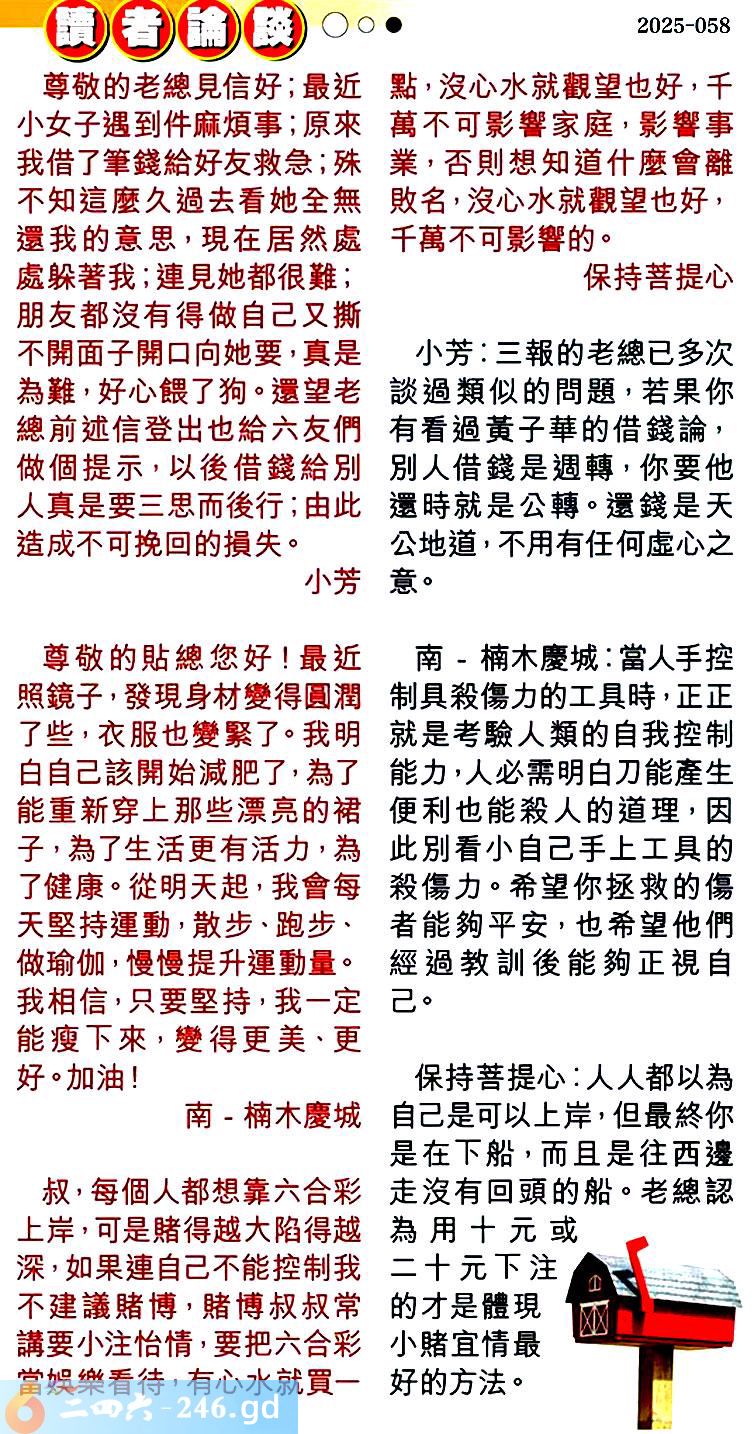第零五八期讀者論談