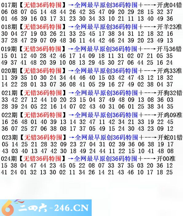 024期:无错36码