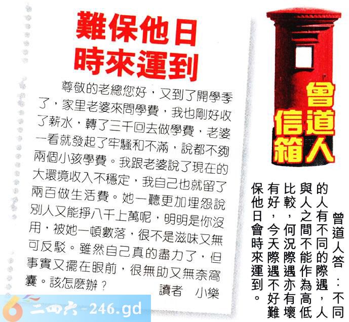 096期老版跑狗一字記之曰:【來】 詩雲:金銀財帛通通來,最怕一朝夢醒來。