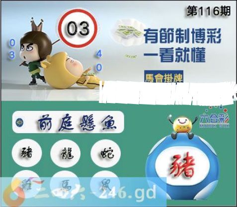2025年116期正版彩图挂:03 爆:猪 挂牌成语:前庭悬鱼 挂牌出肖:猪龙蛇鸡马鼠