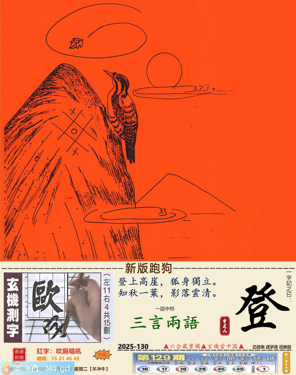 2025年12月16日130期牛(癸丑)(天上火) 130期:老版跑狗玄機一字記之曰:【亂】 詩云:亂點鴛鴦無厘頭糊塗混帳太荒謬 日指馬鹿,認錯老竇,亂點鴛鴦無厘頭; 九唔搭八,求其擺就,糊塗混帳太荒謬。 玄機測字:《軛》 密圖詩:一把石頭抛水中 《記》:人生一雙八字眼 特碼大小單雙句:姑娘十八一朵花 今期必中:曹操 130期:特碼歇后語 脑门上开口-----对天说话 130期正版四字梅花诗:胸有成竹。 130期火车头:烧伤龙。诗:龙死马伤,看好三九梦中游。 130期香港第一手欲钱料:一? 130期曾道人说:“牛?” 130期另版四字梅花诗:有苦难言。 130期香港第一手欲钱料:欲钱看西部大开发。 130期曾道人说:“男人三十好动被象征为什么”? 130期:二字經:小氣 130期:中药是特码 130期:智力金壤:四面楚歌 130期:信箱紅字:【吹唇唱吼】 130期:【暗碼:15-21-46-49】 130期:一語中特:【三言兩語】 發財玄機圖:活力敏捷貼心好動圖中明狗藍綠 130期:藏寳圖 新:最是城中闲静处 老:料峭轻寒结晚阴 禁:狗禁:0尾玄机字《贾》 2025年130期【生活幽默】版 〖觀念一致〗 老處女與花花公子聊天,偏偏觀念始終無法溝通。 花花公子耐心地問:"好,我再問你一個問題,當你進到一間有兩張床的房間裏,一張床上躺了一個女人,一張床上躺了一個男人,你會躺哪張床?"老處女不加思索答:"當然是躺女人的那張床!"花花公子得意地説:"你看,我就説我們的觀念總會一致的嘛!"