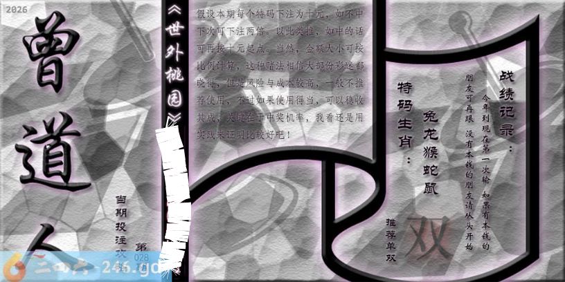 2026029期028期,老跑狗( 零陵烟雨)