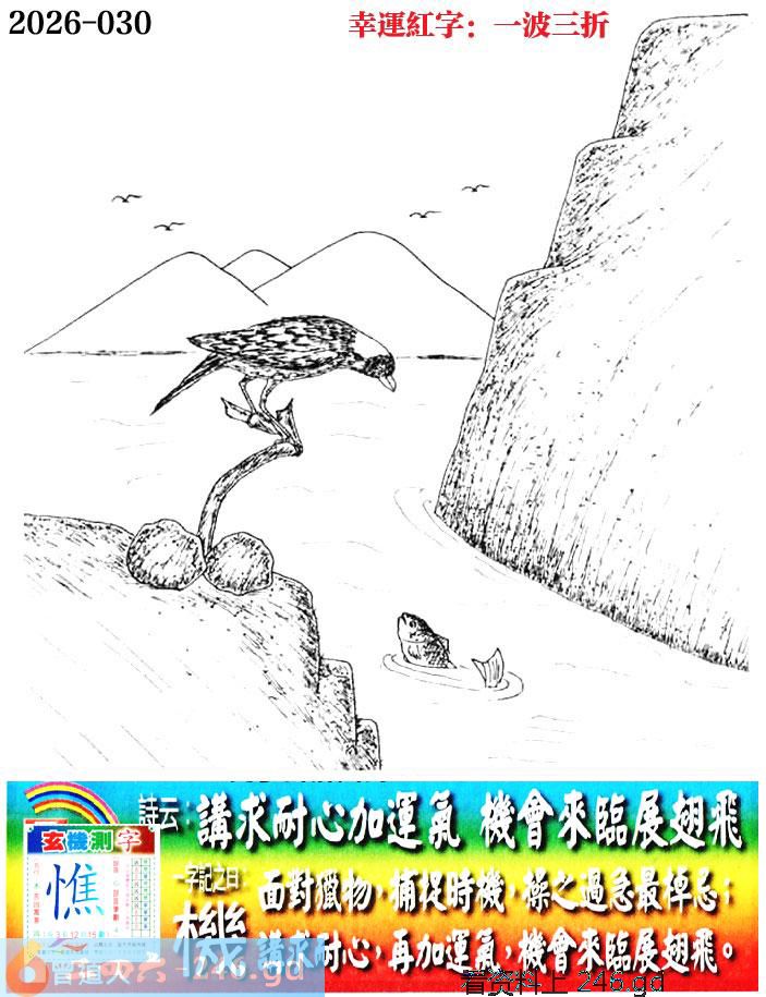 030期老版跑狗一字記之曰:【機】 詩雲:講求耐心加運氣,機會來臨展翅飛。
